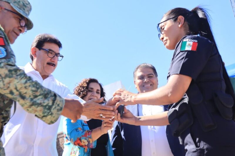Nogales, Sonora, – Con el firme propósito de seguir aplicando acciones que fortalezcan la seguridad pública en la ciudad el Alcalde Juan Gim Nogales entregó cuatro patrullas nuevas totalmente equipadas enviadas por el Gobierno del Estado a la Jefatura de Policía Preventiva y Tránsito Municipal que servirán de mucho apoyo para las operaciones de la corporación a favor de la comunidad.