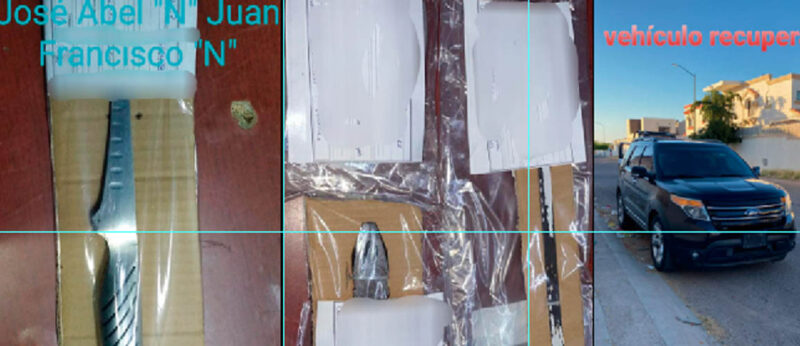 Balderrama .- En posesión de cuchillos a las 00:20 horas de hoy, en la colonia Balderrama la Policía de Hermosillo atrapó a José Abel «N» y Juan Francisco «N» de 32 y 38 años de edad respectivamente.