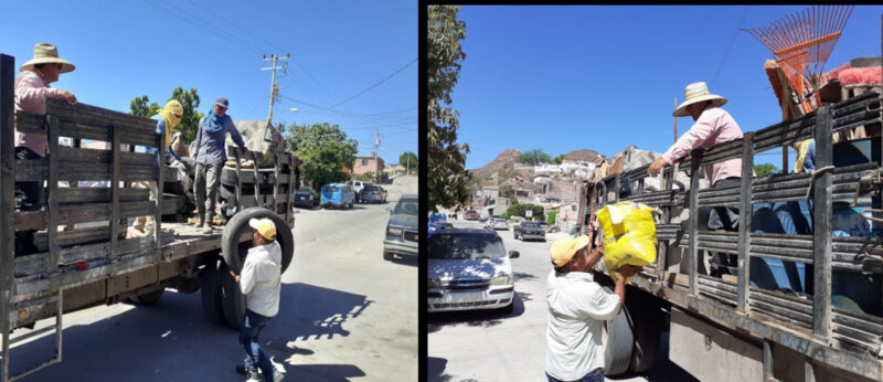 En esta Jornada de Descacharre colaboran Desarrollo Social, Salud Pública Municipal y Servicios Públicos con el objetivo de evitar la aparición de casos de zika, dengue o chikungunya en la comunidad, de ahí que se programe esta actividad en diferentes sectores de Guaymas.