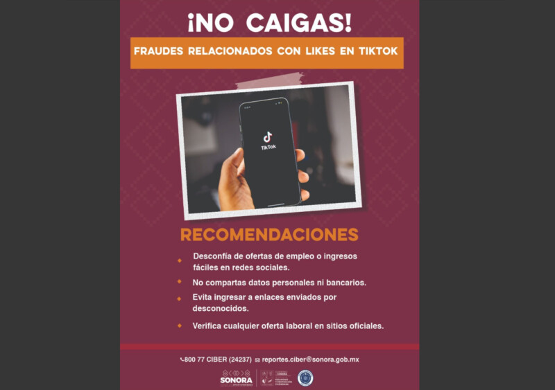 La SSPC Sonora exhorta a la ciudadanía a mantenerse alerta; para orientación o reportar este tipo de incidentes pueden comunicarse con la Unidad Cibernética al 800 772 42 37 o al correo electrónico reportes.ciber@sonora.gob.mx.
