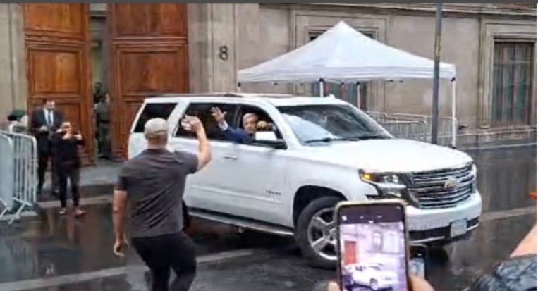 El aún mandatario salió en una Suburban blanca, desde el asiento del copiloto, asomado por la ventanilla, lanzaba besos y alzaba los brazos en señal de despedida.