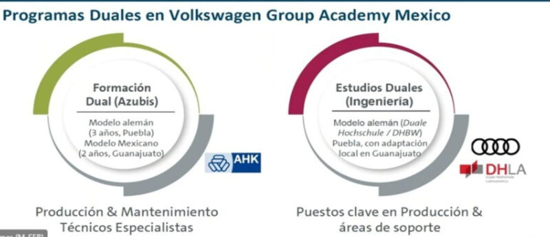 Durante una sesión virtual informativa sobre la implementación de programas de formación dual en las instituciones de educación superior del estado, impartida por dicha empresa filial de Volkswagen de México, se habló sobre impulsar programas de aprendizaje en la empresa, para que los jóvenes aprendan a desarrollar sus habilidades en un área laboral real.