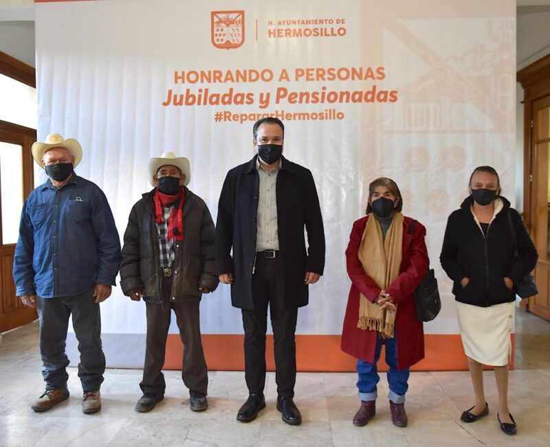 Hermosillo, Sonora.- El presidente municipal, Antonio Astiazarán Gutiérrez, anunció el programa «Honrando a personas jubiladas y pensionadas «, mediante el cual 343 ex trabajadores del Ayuntamiento recibirán mil 500 pesos al mes como apoyo a su economía.