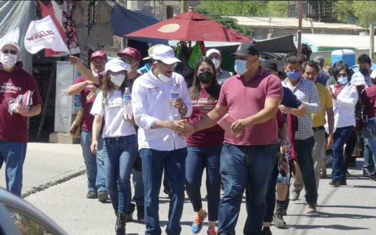 “Estoy proponiendo darles mayor seguridad a ustedes, rescatar los espacios públicos para que las familias nogalenses puedan realizar actividades deportivas y recreativas, pero además de empoderar a la mujer con la asignación de créditos blandos para que puedan emprender un negocio y también construiremos una guardería para los hijos de las amas de casa trabajadoras y sobre todo solucionar el problema de la falta de agua potable en la población”, les dijo el candidato a la Presidencia Municipal por Morena.