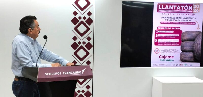 CIUDAD OBREGÓN, SONORA .- En el marco de las acciones internacionales y nacionales contra las arbovirosis, así como con el objetivo de fortalecer las acciones de salud preventiva y mantener un entorno más limpio, el Presidente Municipal de Cajeme, Javier Lamarque, invitó a la ciudadanía a sumarse al “Llantatón 2026”, llevando llantas en desuso a los centros de acopio habilitados en la ciudad.