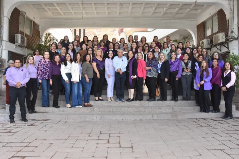 Navojoa, Sonora, 3 de marzo 2025.-Con la simbólica imposición del lazo morado durante un acto protocolario en Palacio, presidido por funcionarios municipales y líderes de organizaciones civiles, arrancaron este lunes las actividades oficiales del ayuntamiento por Marzo como Mes de la Mujer.