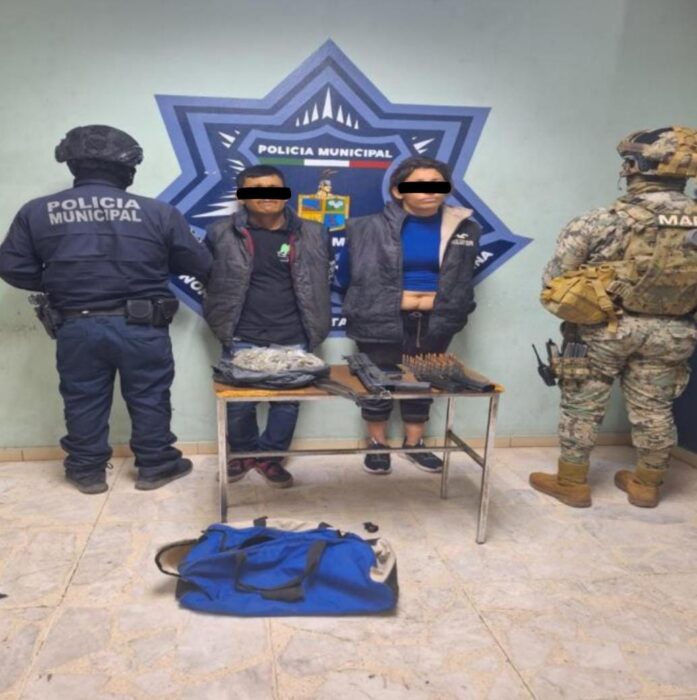 La detención de los presuntos identificados como Sonia Guadalupe “N.”, de 33 años y José Lauro de “N.”, de 36 años, se suscitó al nororiente de la ciudad en la colonia Cajeme, por la calle Lorenzo Barcelata y Rodolfo Campodónico.