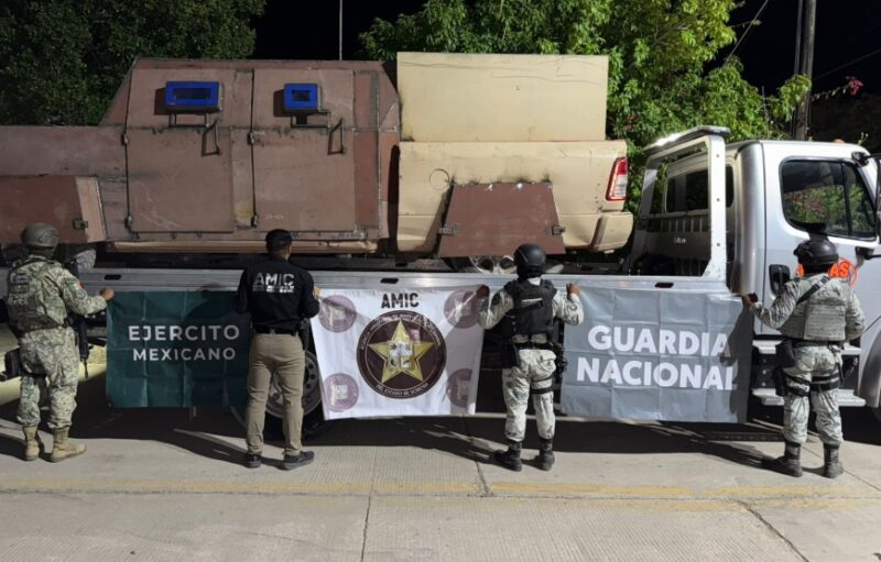 En un operativo conjunto entre la Agencia Ministerial de Investigación Criminal (AMIC), Secretaría de la Defensa Nacional (DEFENSA) y Guardia Nacional (GN), se realizó una acción táctica de cateo en un domicilio ubicado en Pitiquito, logrando asegurar dos vehículos con blindaje artesanal, cartuchos de alto calibre y diversos indicios.