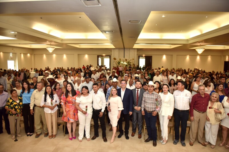 “Me da mucho gusto ver tantos matrimonios de jóvenes y adultos mayores, aquí se demuestra que el amor sigue en cada uno de ustedes”, resaltó el Presidente Municipal, en presencia de la directora del DIF, Eliana Castro Carlón, los cinco titulares del Registro Civil representados por el de la Oficialía Navojoa, Raúl Acedo Gastélum, los regidores Alma Quiroz y Carlos Cota, e invitados.
