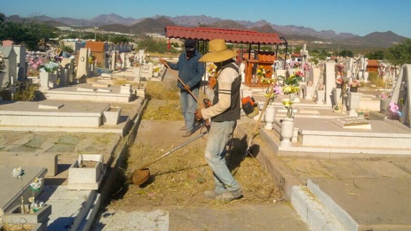 En los cementerios locales se trabajó con tiempo en la rehabilitación de lámparas auxiliares y todo lo necesario para el correcto funcionamiento ante la celebración del Día de Muertos, además de limpiar y retirar maleza, encalado, pintura en entradas principales, y construcción de gavetas, entre otros.