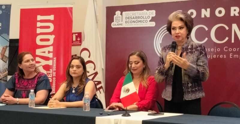 La Presidenta del CCME Capítulo Sonora, acompañada de Diana Rocío Fernández, Directora de la Secretaría de Desarrollo Económico de Cajeme y de Cuqui Montelongo, Subdirectora de DIF Cajeme en representación de la Presidenta del Voluntariado de DIF Cajeme, Martha Patricia Patiño Fierro, Miriam Padilla López, Presidenta del Consejo Coordinador de Mujeres Empresarias en Cajeme; Nubia Flores Amaya, Presidenta de la OCV; resaltó la importancia de crear alianzas entre mujeres, apoyarse mutuamente y fomentar el consumo local, señalando que al empoderar a una mujer se fortalece a toda una comunidad.