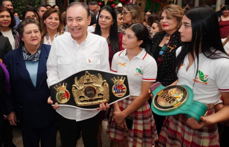 Las campeonas Sonorenses de Box Odaliz Corzo y Camila Zamorano en compañía de la Directora General del cecytes Sonora la Dra. Blanca Valenzuela, estuvieron presentes en el evento conmemorativo del Gobierno de Sonora por el Día Internacional de «La Eliminación de la Violencia contra las Mujeres» encabezado por el gobernador de Sonora Alfonso Durazo.