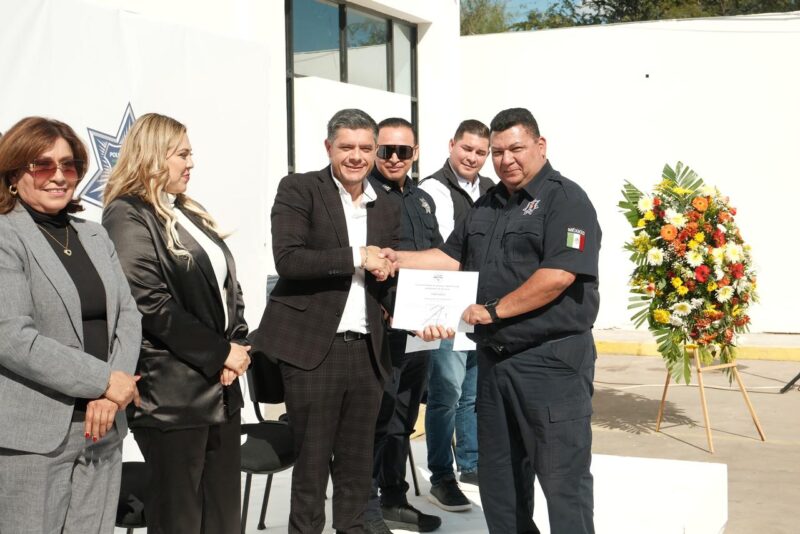 En las ceremonias estuvieron presentes el Comisario de Seguridad Pública, Iván Enrique Valenzuela Ruiz, y el jefe de tránsito, César Guadalupe Mendoza Lucero.
