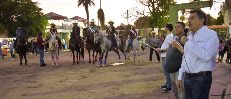 El Alcalde Javier Lamarque Cano acompañado de su esposa, Patricia Patiño Fierro, acudió a presenciar la cabalgata organizada por la ramada tradicional y a ser parte de los festejos que se realizaron en honor al aniversario de Cócorit.
