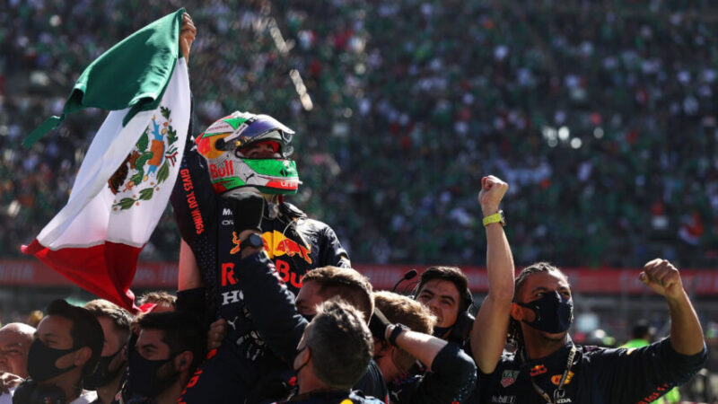 El piloto mexicano Sergio ‘Checo’ Pérez de Red Bull subió al podio en el Gran Premio de México de la Fórmula 1 al quedar en la tercera posición.