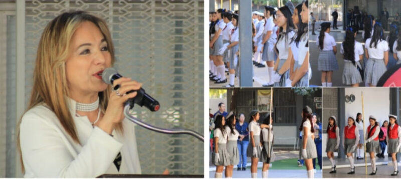 La Directora de la Secundaria número 8, Camelia Lara Yucupicio agradeció a las autoridades municipales y académicas por elegir a su institución como anfitriona de esta demostración en la que se refuerzan los valores cívicos y de respeto a la Bandera Mexicana como uno de los tres símbolos patrios que enaltecen a nuestro País.
