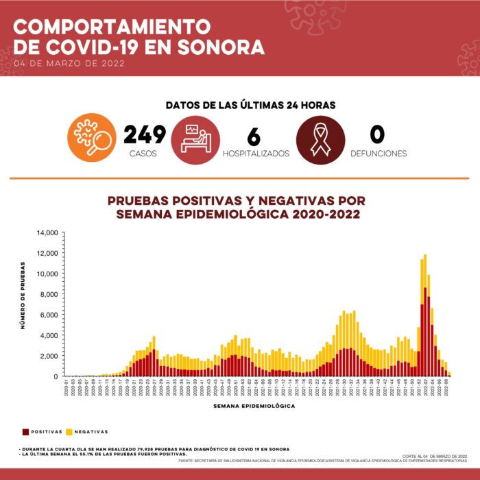 Hermosillo, Sonora- Este día la Secretaría de Salud (SSA) informó que se registraron 249 casos y ninguna defunción por Covid-19.