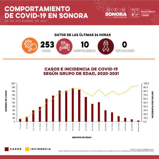 Hermosillo, Sonora.- La Secretaría de Salud de Sonora confirmó este día 253 nuevos contagios y ninguna defunción por Covid-19.