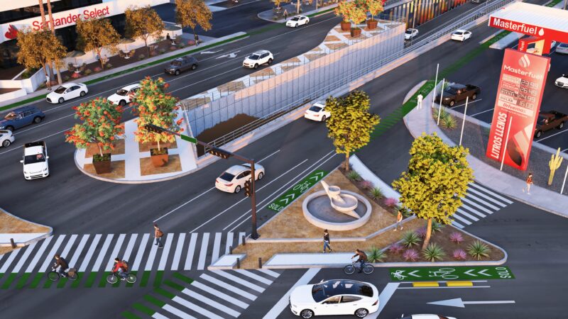 Hermosillo, Sonora, 29 de diciembre, 2024.- La construcción de ciclocarriles con las dimensiones adecuadas tanto en el bulevar Colosio como en el bulevar Solidaridad tendrá el proyecto integral de paso desnivel.