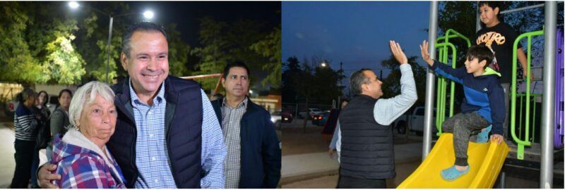 Hermosillo, Sonora.- El presidente municipal de Hermosillo, Antonio Astiazarán Gutiérrez correspondió a la confianza de vecinas y vecinos de la colonia Los Olivos al entregarles ya rehabilitado el parque Escorpión Dorado.