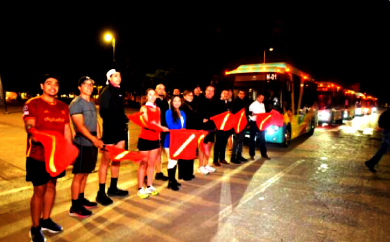 El H Bus ya está en ruta, expresó Antonio Astiazarán Gutiérrez al dar el banderazo de salida a los once camiones eléctricos que desde las 5:00 am entraron en funciones para transportar de manera gratuita a estudiantes universitarios.