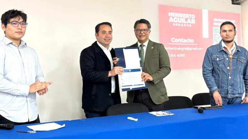 Al finalizar su conferencia, el senador Heriberto Aguilar recibió una constancia de participación de manos del Dr. César Octavio Tapia Fonllen, coordinador de la Facultad Interdisciplinaria de Ciencias Sociales, quien reconoció su aportación académica y su compromiso con la transformación de México.