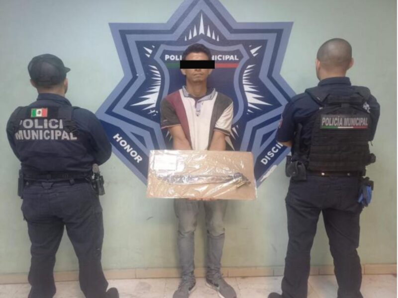 Una vez capturado, los elementos le realizaron una revisión corporal percatándose que la persona portaba un arma prohibida tipo machete, informándole que sería vinculado por el presunto delito de portación de arma prohibida.