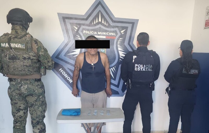 En atención a un incidente de alto impacto registrado en la colonia El Rodeo, autoridades de la Policía Municipal, Policía Estatal y Marina, lograron la detención de una persona en presunta posesión de dosis de droga.