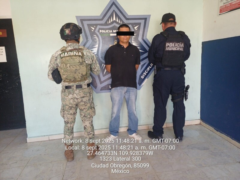 Elementos de la Policía Municipal de Cajeme, con apoyo de Personal de Marina, realizaron la detención de un hombre identificado como Juan Ramón «N», de 36 años de edad, por su presunta participación en un robo de infante en grado de tentativa, en hechos ocurridos la mañana de este lunes en el Hospital IMSS-Bienestar.