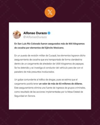 Así lo dio a conocer el Gobernador Alfonso Durazo, por medio de su cuenta X