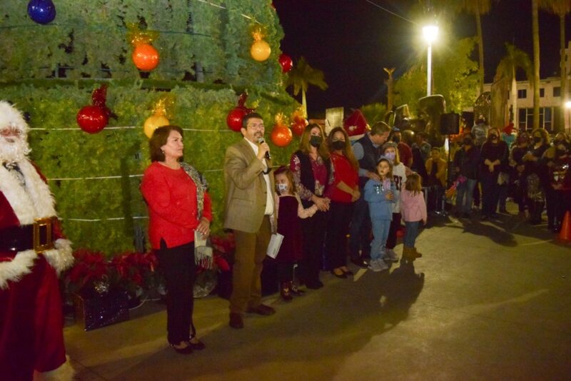 “Las esferas de este árbol significan los frutos que, como gobierno, estamos realizando, y la estrella de Belén, la luz que nos guía hacia el Navojoa de porvenir y crecimiento que desean los ciudadanos”, destacó.