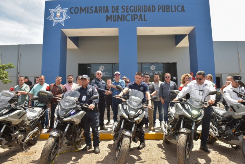 Navojoa, Sonora, 18 de abril 2026.- Para el fortalecimiento a la vigilancia citadina y mejora a los tiempos de respuesta a los llamados de auxilio de la ciudadanía, el alcalde Jorge Alberto Elías Retes entregó, este sábado, a la Comisaría de Seguridad Pública 15 moto patrullas totalmente equipadas, cuya inversión ascendió a 3 millones 300 mil pesos vía Fortamun.