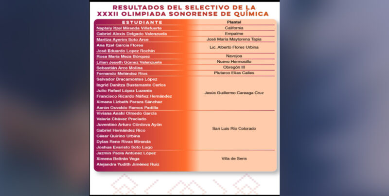 Un total de 25 estudiantes del Colegio de Bachilleres del Estado de Sonora (Cobach) conforman el preselectivo de la 32 Olimpiada Sonorense de Química, que está integrado por 30 alumnos de diversas instituciones educativas.