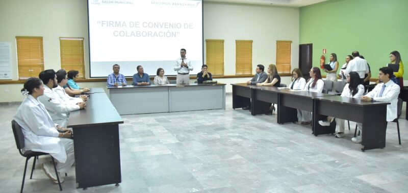CIUDAD OBREGÓN, SONORA.- Con el objetivo de sumar a las instituciones académicas a las acciones de gobierno en materia de salud comunitaria y que esta sinergia se traduzca en mayor bienestar social, el Gobierno Municipal de Cajeme, a través de la Dirección de Salud, firmó convenio de colaboración con la Escuela Iberoamericana de Ciencias de la Salud, el Instituto de Formación y Capacitación de Profesionales de Enfermería, la Universidad Durango Santander e IMSS Bienestar a fin de que las y los pasantes cumplan su servicio social prestando atención médica en las diferentes Unidades Médicas Municipales.