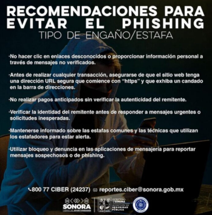 Para asesorías sobre prevención de Phishing, la ciudadanía puede comunicarse al teléfono 800 7724237 o al correo reportes.ciber@sonora.gob.mx.