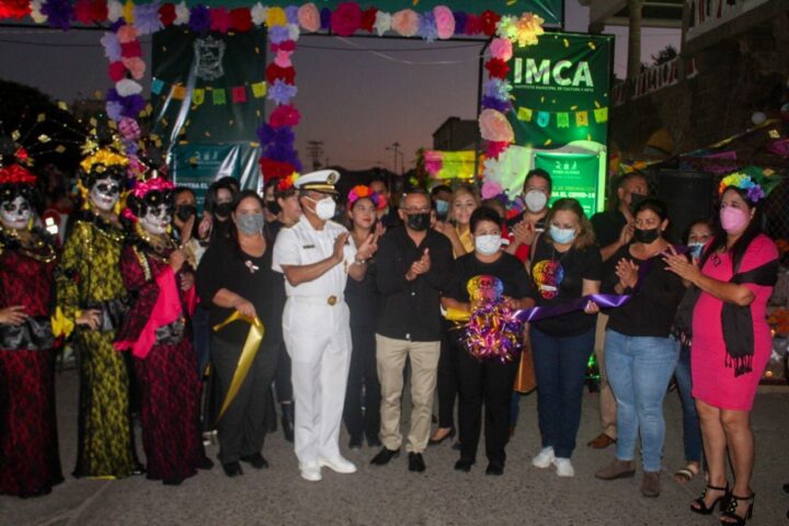 En representación de la alcaldesa Karla Córdova González, el Secretario del Ayuntamiento, Celestino Sarabia; el Comandante de la Cuarta Región, Raúl Pérez Vázquez; María del Carmen Corral, quién personificó a la catrina en esta edición, cortaron el listón de inauguración acompañados de regidores y funcionarios.