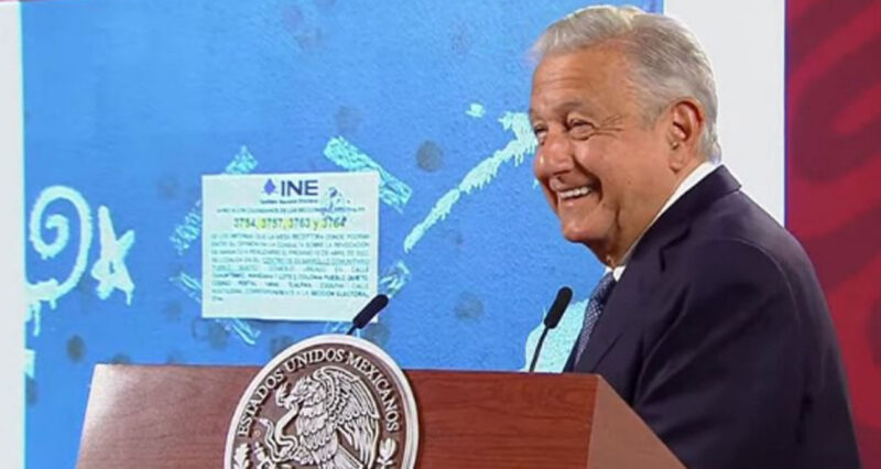 En conferencia en Palacio Nacional, el mandatario dijo lo anterior luego de mostrar una foto en la que se aprecia una hoja de papel pegada en una barda y en la que se llama a los habitantes de Tlalpan a localizar sus mesas receptoras para “emitir su opinión en la consulta sobre la revocación mandato”.