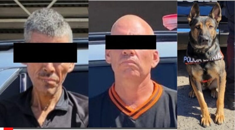 El ejemplar canino Meno, especialista en la detección de narcóticos, alertó a los oficiales de la PESP sobre los 10 envoltorios con sustancia prohibida que tenía Carlos “N”, de 44 años, en la colonia Los Ángeles; además, en la López Portillo, colaboró para la detención de Julio “N” en posesión de ocho bolsas con hierba verde.