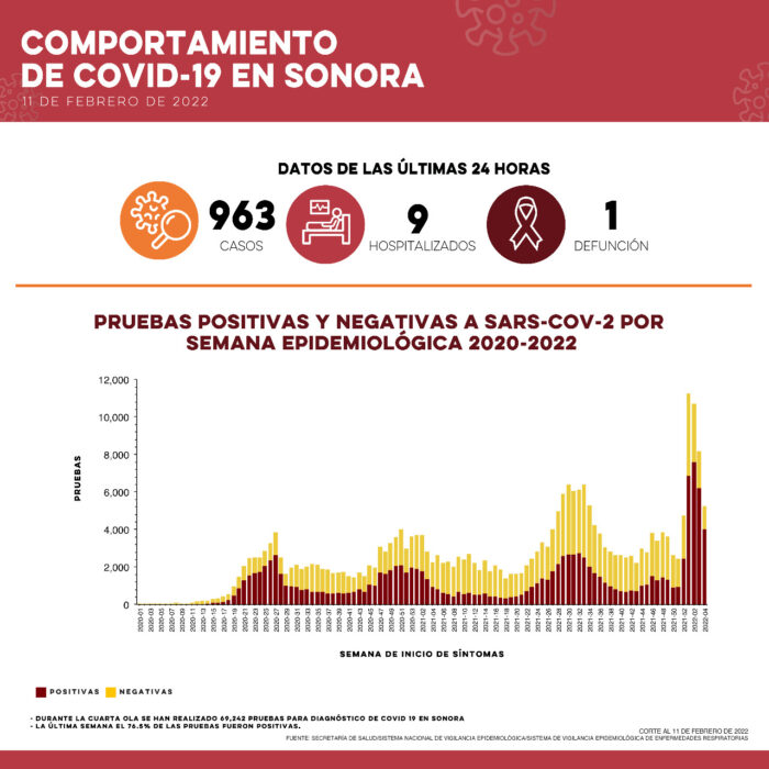 Hermosillo, Sonora- La Secretaría de Salud en el estado (SSA) informó este viernes que registró 963 casos y una defunción por Covid-19.
