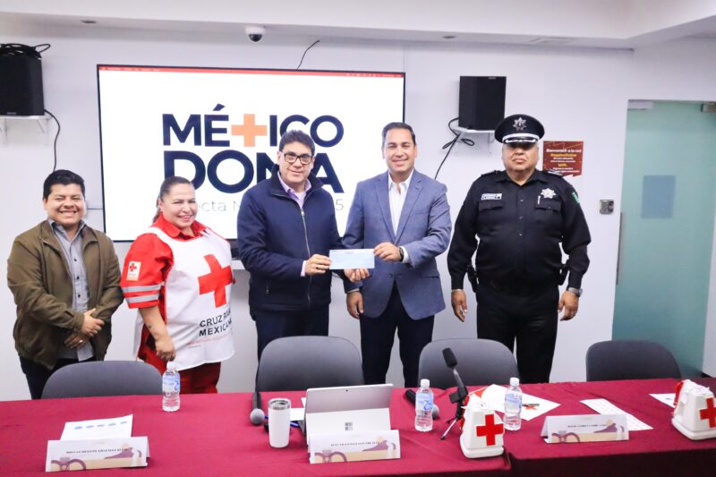 Con la presencia de la comandanta operativa de la Cruz Roja en Nogales Guadalupe González Bucio y el director de Ingresos de la Tesorería Municipal se hizo la ceremonia protocolaria en la que el alcalde depositó en una de las alcancías su donativo personal y entregó el cheque con valor de 50 mil pesos a los directivos.