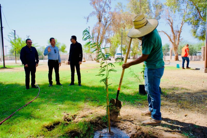 San Luis Río Colorado, Sonora .- Con la plantación total de 55 nuevos árboles en el Bosque de la Ciudad, fue como esta mañana el 30 Ayuntamiento a través de la Dirección de Obras y Servicios Públicos inició el nuevo programa de reforestación de áreas verdes.