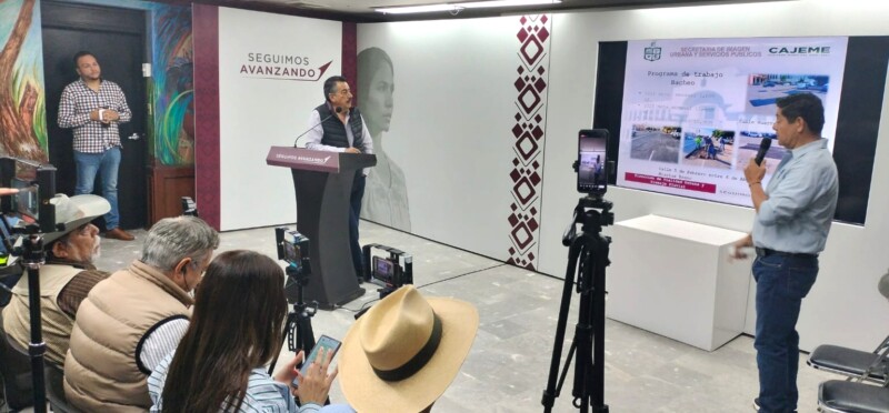 Gerardo Sastré, titular de la Secretaría de Imagen Urbana y Servicios Públicos, informó que la meta mensual de bacheo en 2021 era de 5 mil metros cuadrados, cifra que se incrementó durante 2025 a 15 mil metros cuadrados gracias a la adquisición de maquinaria propia del Ayuntamiento, mientras que para este año el programa se fortalece aún más con una proyección de 50 mil metros cuadrados atendidos cada mes.