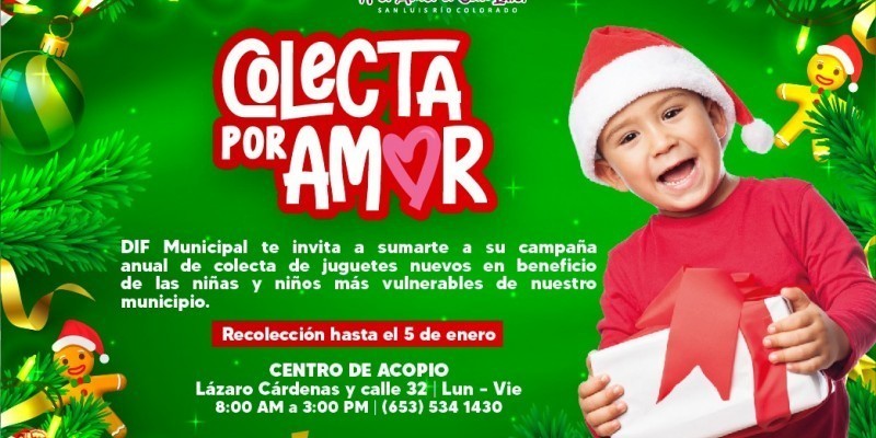 San Luis Río Colorado, Sonora (Diciembre 19 de 2024).- Con la finalidad de pintar sonrisas en los rostros de niñas y niños en situación vulnerable, el DIF Municipal invita a la comunidad a la campaña de recolección de juguetes “Colecta Por Amor 2024”, la cual estará activa hasta el 05 de enero de 2025.