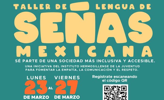 Hermosillo, Sonora.- Con el objetivo de fomentar la inclusión y brindar a las juventudes nuevas herramientas de comunicación, el Instituto Hermosillense de la Juventud (IHJ) invita a participar en el Taller de Lengua de Señas Mexicana, que se llevará a cabo del 23 al 27 de marzo.