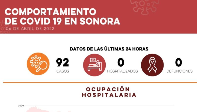 Hermosillo, Sonora- La Secretaría de Salud (SSA) confirmó 92 nuevos casos de Covid-19 y cero defunciones a causa de la enfermedad.