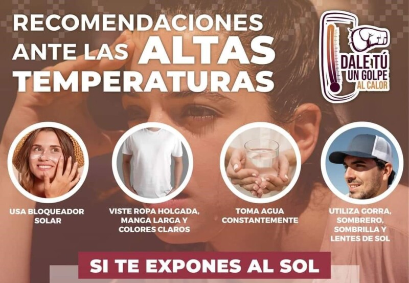 También es importante usar sombrero o gorra, aplicar bloqueador solar cada tres horas y, de ser posible, utilizar sombrilla al permanecer en exteriores. Estas medidas ayudan a reducir la probabilidad de sufrir afectaciones por las altas temperaturas.