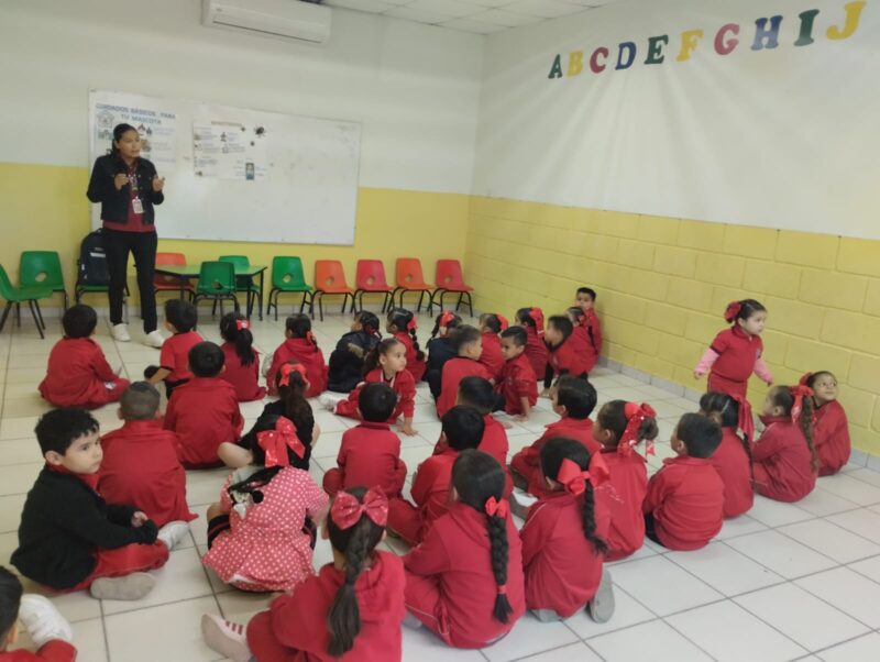 En esta semana se visitaron el kínder de Colegio Concordia, la escuela primaria Guadalupe Victoria y secundaria general Abelardo L. Rodríguez, donde personal de la dependencia abordó temas como “Bienestar animal”, “Plato del Buen Comer”, “Higiene dental” y Pensamiento positivo y optimismo”.