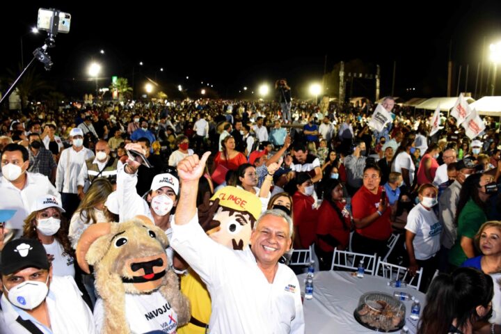 Navojoa, Son.- Arropado por toda la fórmula ganadora de la Alianza ‘Va por Sonora’, el ingeniero Jorge Luis Márquez Cázares, candidato a la alcaldía de Navojoa, se reunió con más de 7 mil navojoenses, quienes lo han venido acompañando en su gira de campaña hacia la presidencia municipal.