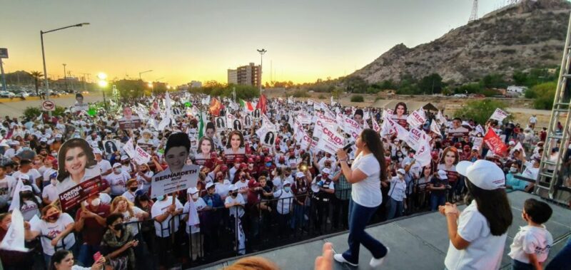 Más de veinte mil personas realizaron una gran marcha desde el emblemático Cerro de la Campana hasta el bulevar Paseo Río Sonora con la candidata por la Alcaldía de Hermosillo, Celida López Cárdenas, en un ambiente de alegría, fiesta y respaldo para la abanderada de Morena.