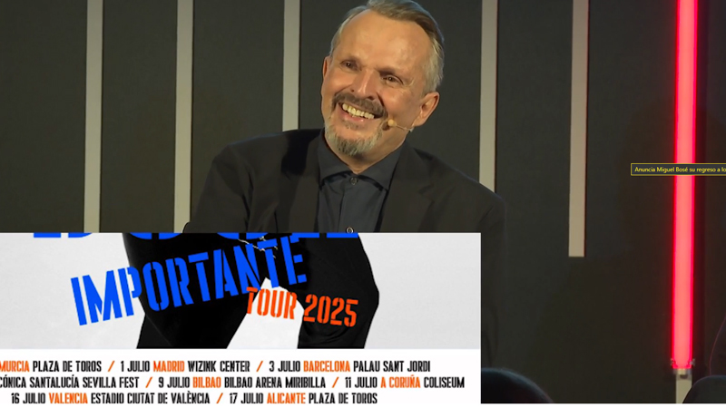 Madrid. Miguel Bosé ha anunciado este jueves su regreso a los escenarios ocho años después con su gira mundial ‘Importante tour’, que arrancará en febrero de 2025 en México, y con la que acudirá a once ciudades españolas durante el verano de ese mismo año, entre ellas Valencia y Alicante en julio, según ha anunciado su empresa de representación RLM.
